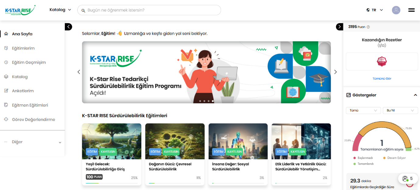 The K-STAR RISE Supplier Sustainability Training Program is a development platform designed in line with one of the core principles of Kibar Group’s sustainability strategy: “We Encourage Our Stakeholders.” The program aims to enhance suppliers’ sustainability knowledge, strengthen their capabilities in green transformation, and foster a sustainability culture throughout the entire value chain.